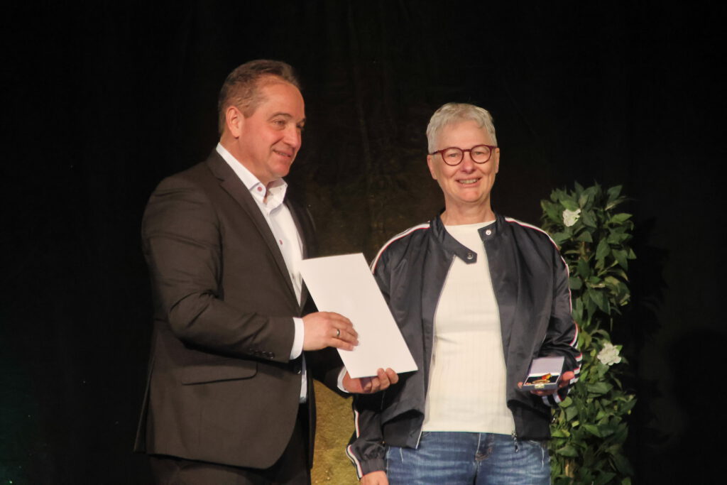 Sehr stolz waren wir dann am 15. März 2026. Unserer künstlerische Leiterin und 1. Vorsitzenden Susanne Rechner wurde die Verdienstmedaille des Landes Rheinland-Pfalz verliehen. In einer schönen Feierstunde in unserem Theater wurde ihr über 40-jähriges ehrenamtliches Engagement für die Freilichtbühnen in Deutschland generell und im besonderen natürlich für die Burgspiele Altleiningen gewürdigt. Über 70 Gäste spendeten ihr und ihrer Arbeit ausführlich Applaus!